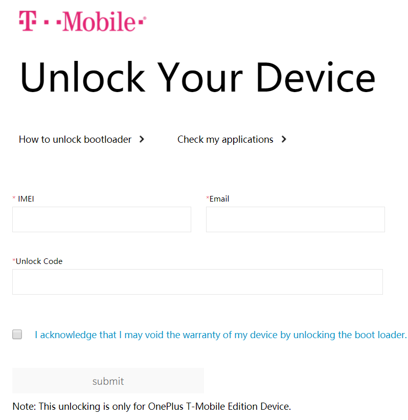 - For T-Mobile devices, unlocking the bootloader may void your carrier warranty.